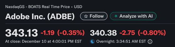 El cuarto trimestre de Adobe fue bastante similar al tercero y, siendo honestos, muy similar a todos los trimestres de los últimos 2-3 años: a pesar de reportar otro trimestre de beat-beat-beat (guidance), el mercado demostró una vez más que simplemente no le importa. La acción subió inicialmente un 5% cuando se publicaron los resultados (aunque ningún humano había tenido tiempo de leerlos), pero finalmente corrigió y acabó en rojo. ¿Te suena? ¡Debería!