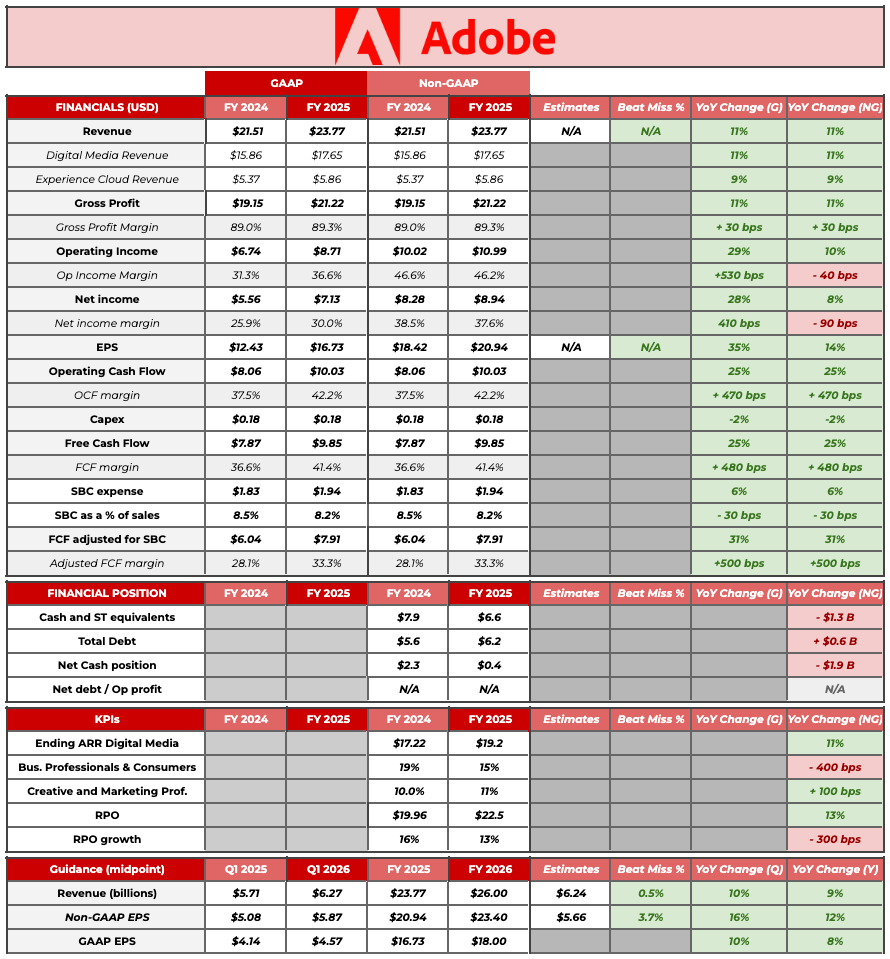Empecemos con la tabla resumen de Adobe donde me centraré en los números anuales: