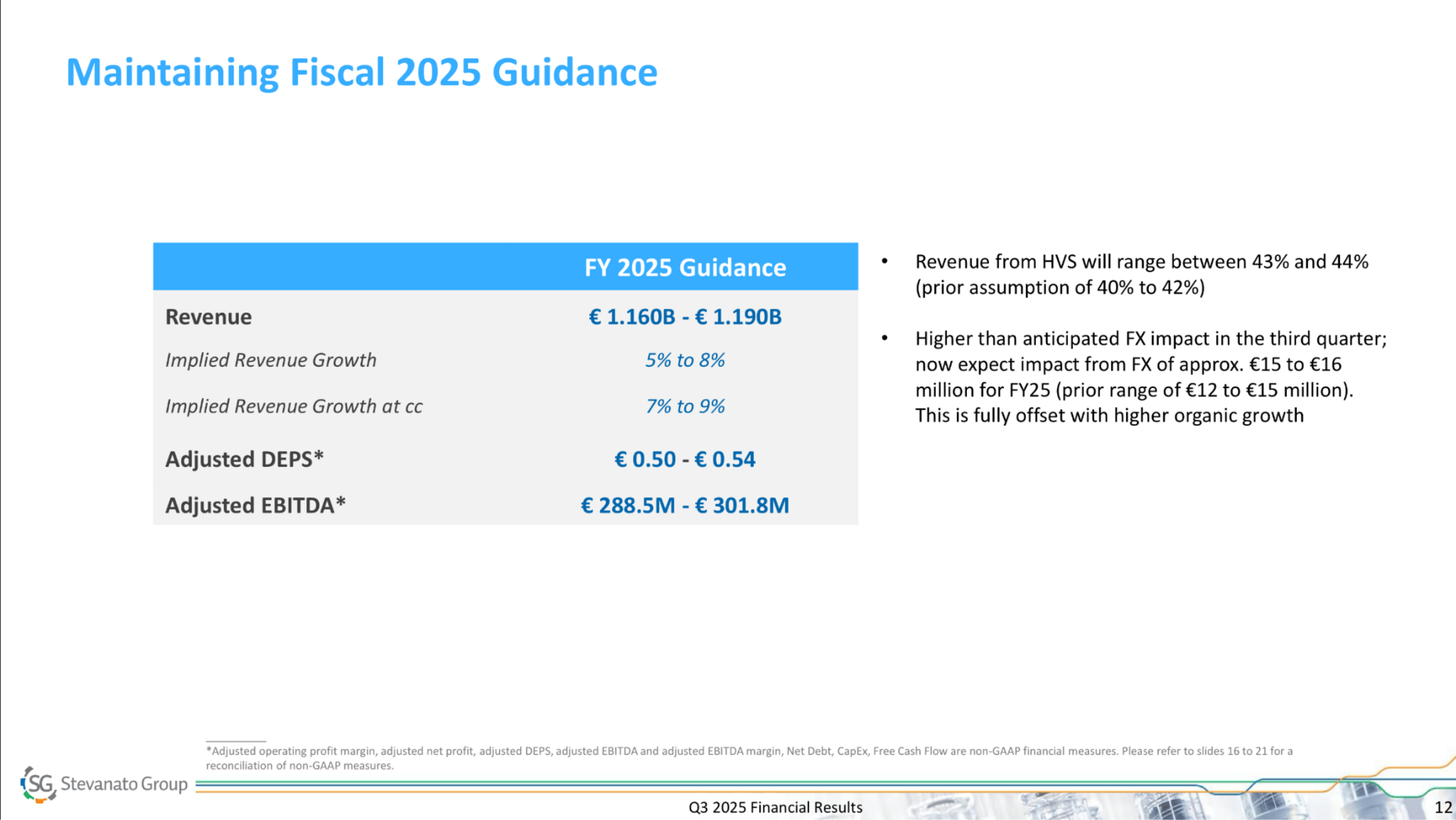 El guidance fue la misma historia de nuevo: Stevanato elevó implícitamente su guidance orgánico, pero el equipo directivo decidió dejarlo sin cambios debido a mayores vientos en contra del tipo de cambio: