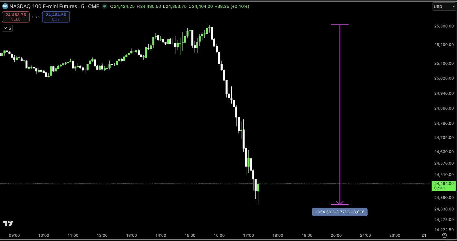 Los mercados comenzaron la semana en territorio negativo, esperando los resultados de Nvidia el miércoles. Muchos tomaron estos resultados como una manera de medir si el trade de la IA seguía viento en popa a toda vela, y los resultados de Nvidia no decepcionaron. La compañía reportó nuevamente números espectaculares (al César lo que es del César) y comenzó subiendo un 5% el día después, impulsando al Nasdaq alrededor de un 2%. Muchos se apresuraron a afirmar que el trade de la IA estaba lejos de terminar y que el "mercado bajista había sido cancelado", pero luego los mercados registraron un impresionante giro a la baja intradía. Simplemente una línea recta hacia abajo:
