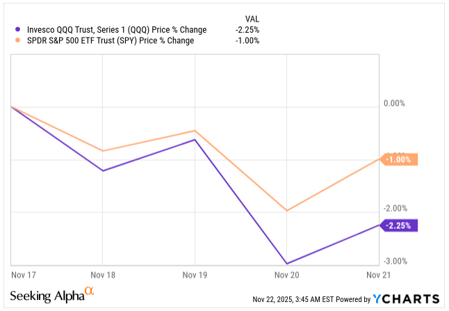 Fue una semana muy interesante en los mercados financieros (siempre lo es, ¿verdad?). Ambos índices cayeron, con el Nasdaq sufriendo una caída más significativa que el S&P 500: