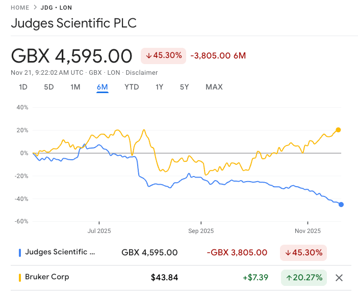 La divergencia entre Judges y Bruker (BRKR) últimamente ha sido interesante, especialmente porque ambas están expuestas a palancas de crecimiento similares: