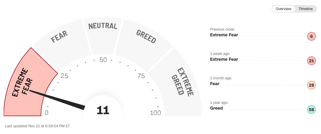 El fear and greed index tocó un mínimo de 6 el jueves, pero se recuperó ligeramente el viernes: