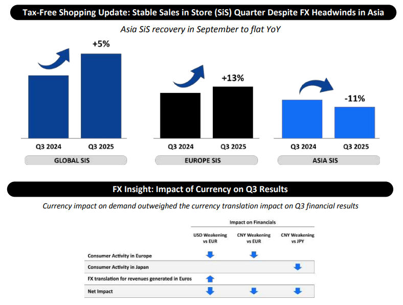 Es innegable que aún es demasiado pronto para saber si la adquisición de Global Blue dará sus frutos. Global Blue creció un 5% en el tercer trimestre, con un fuerte crecimiento en Europa (+13% interanual) compensado por vientos en contra en Asia (-11% interanual) debido a los tipos de cambio: