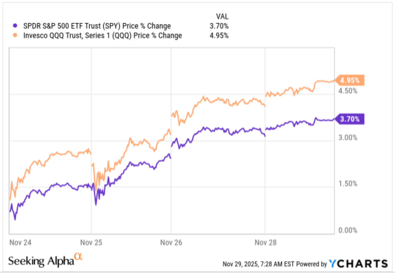 Fue una semana relativamente tranquila en los mercados financieros debido al Día de Acción de Gracias. Los mercados estuvieron cerrados el jueves, pero ambos índices se tomaron un respiro y subieron significativamente esta semana: